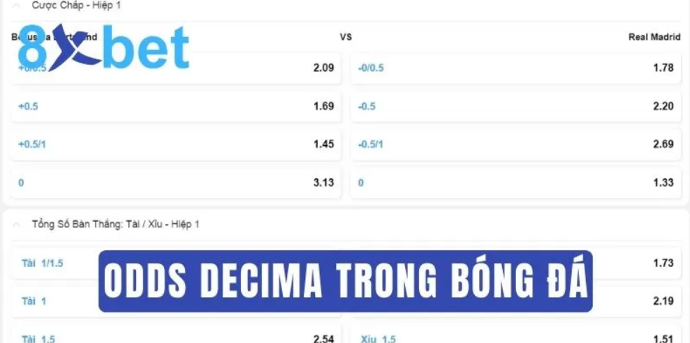 Đây là loại tỷ lệ dễ hiểu nhất, được sử dụng rộng rãi tại châu Âu và Việt Nam. Odds thập phân biểu thị tổng số tiền người chơi sẽ nhận được khi thắng.